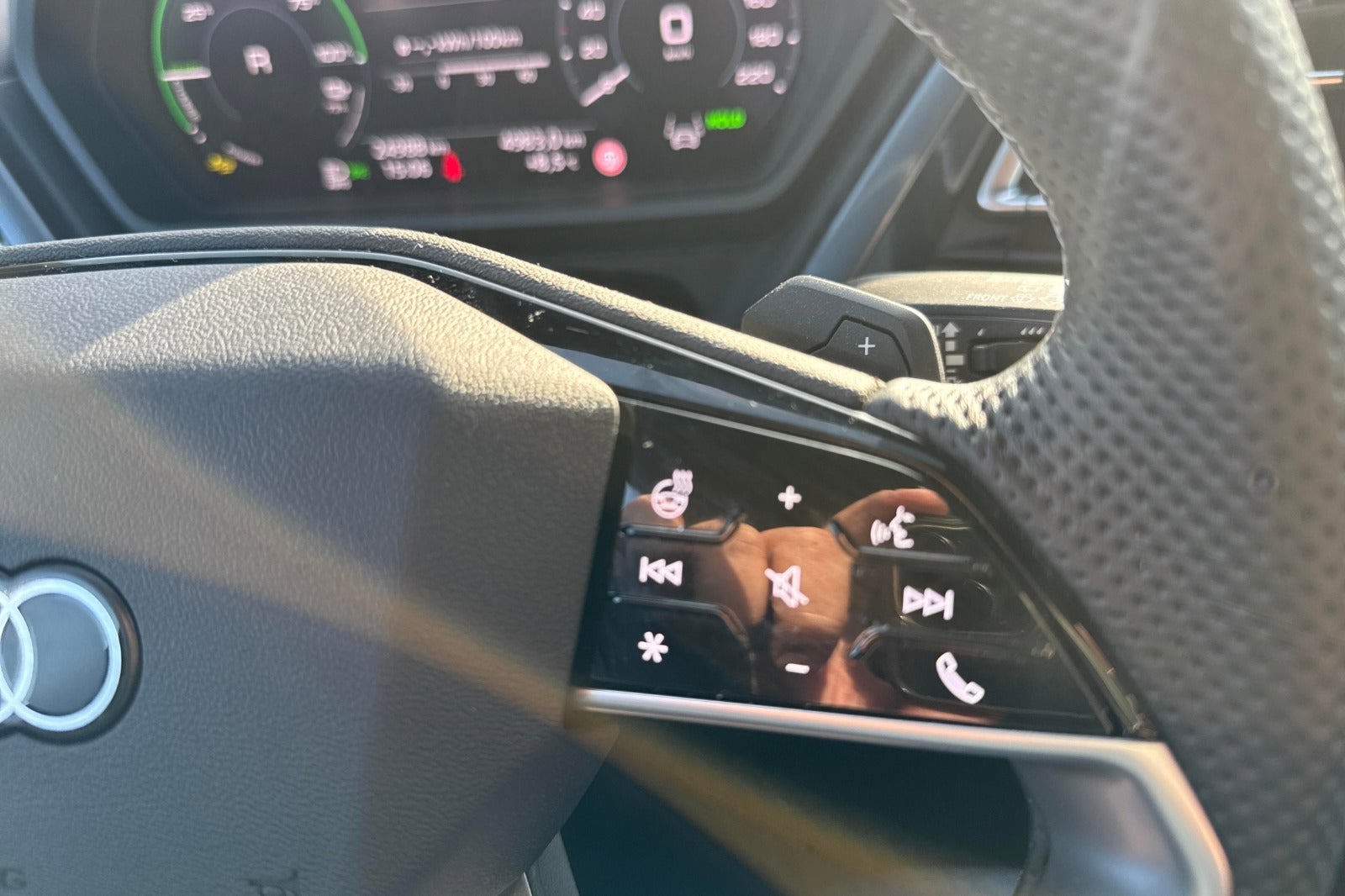 Se udvalgt udstyr nedenfor: kørecomputer, digitalt cockpit, sportssæder, højdejust. forsæder, el-justerbar lændestøtte, 20" alufælge, el-klapbare sidespejle m/varme, fuld led forlygter, mørktonede ruder i bag, automatgear, varme i rat, varmepumpe, 3 zone klima, nøglefri adgang, adaptiv fartpilot, sædevarme, el-ruder, dab radio, navigation, håndfrit til mobil, android auto, apple carplay, regnsensor, bakkamera, parkeringssensor (bag), parkeringssensor (for), dæktryksmåler, skiltegenkendelse, træthedsregistrering, vognbaneassistent, blindvinkelsassistent, automatisk parkeringssystem